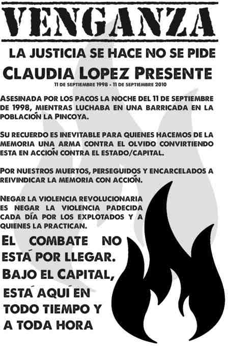 We do not forget the Urban Guerrillas and the Undisciplined Fighters that lost their lives in the fight against the system, for dignity and for freedom Ch.Kassimis, Ch. Tsoutsouvis, M. Prekas, Ch. Marinos, Ch. Temperekidis